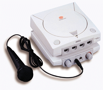 There is also a very unusual perhiprial that is a Karaoke machine that hooks onto the bottom of the Dreamcast.